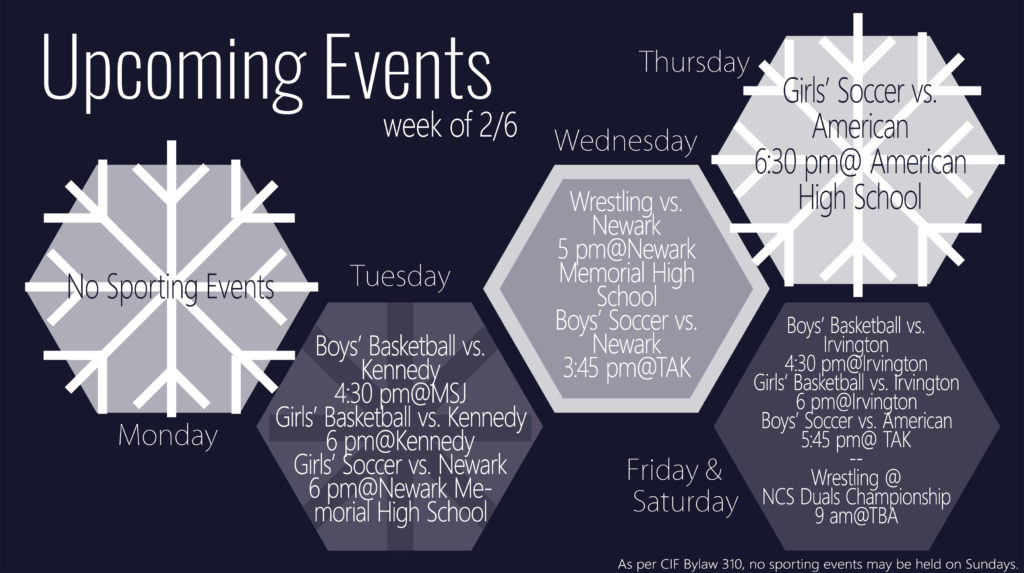 Check out the schedule for this week’s sports events and cheer on your school teams as they kick off a new winter sports season!