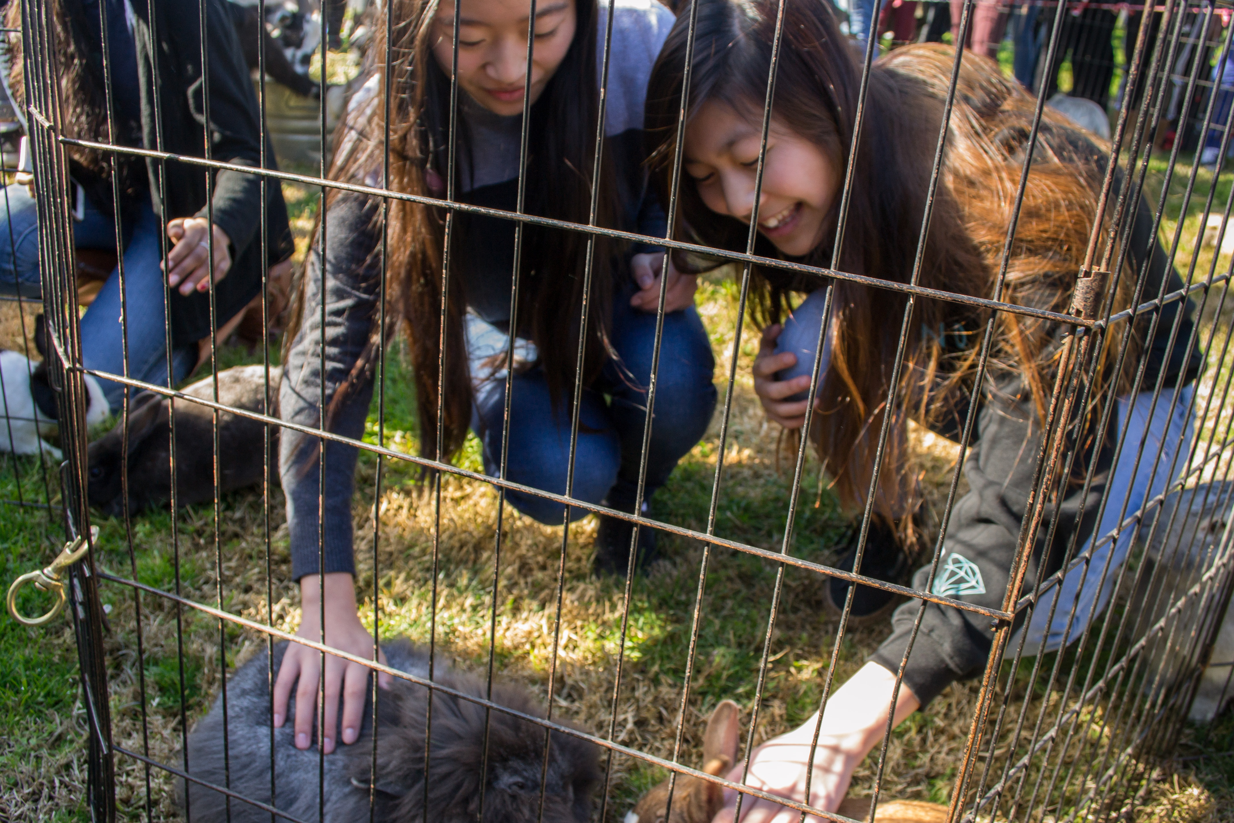 Juniors Jacquelyn Chau and Phyllis Tang pet rabbits at the Petting Zoo. The event, which was set up by ASB Activities Coordinator Ali El-Sadany, took place January 24 at the Horseshoe. The Zoo included more than 25 animals, such as sheep, goats, pigs, bunnies, chickens, ducks, tortoises, and an alpaca.