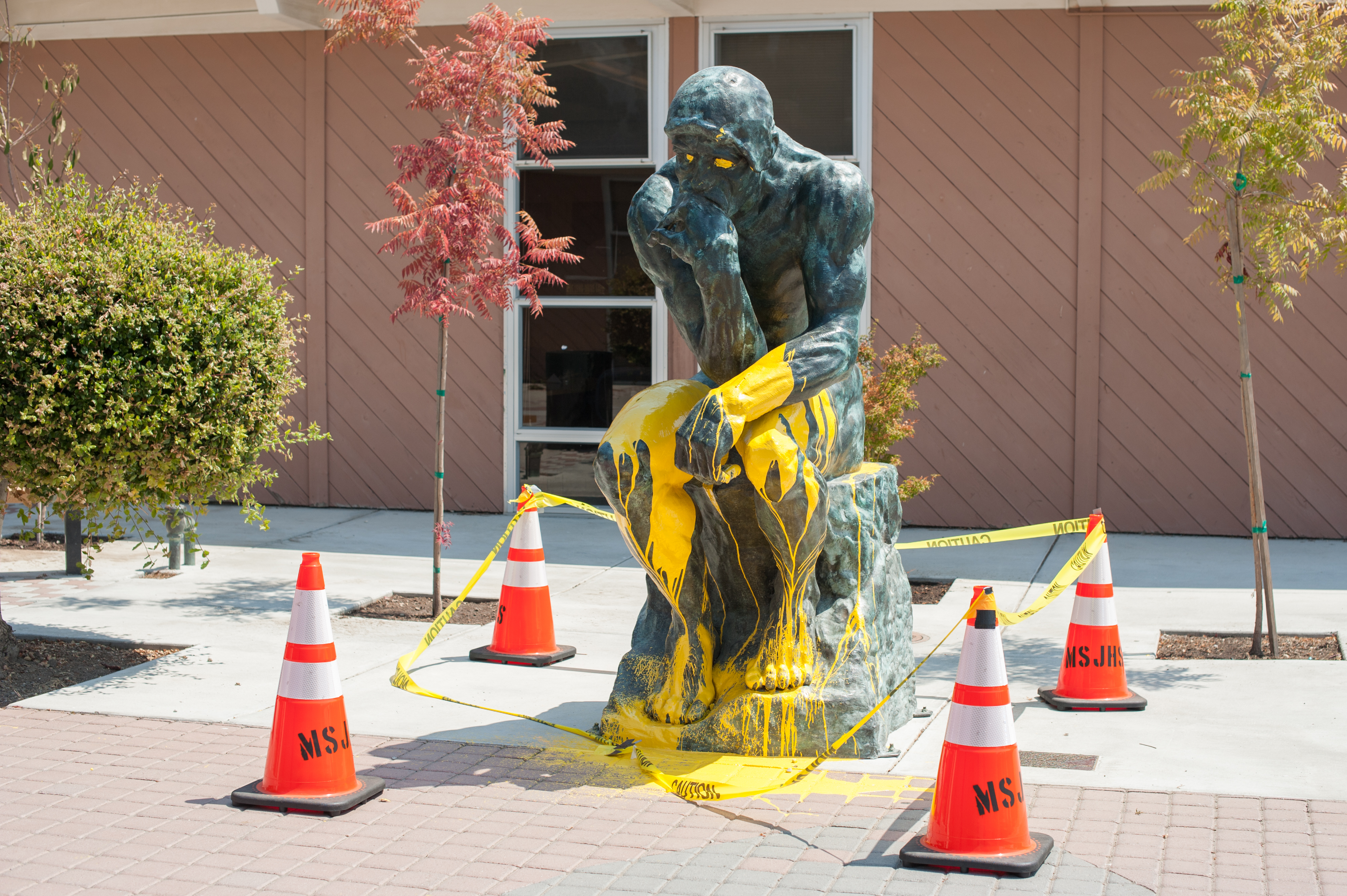 When first vandalized, the Thinker statue was covered in yellow paint. Since all runoff on campus goes to the creek, the graffiti on the Thinker could not simply be power washed off; it had to be removed through environmentally-friendly methods, which are more time-consuming and expensive. After maintenance crews spent more than 50 hours removing the paint, vandals returned the next day to spray red paint on the Thinker’s face, and the maintenance crews spent additional hours fixing it. The Thinker was then coated with anti-graffiti material to prevent further vandalism. The costs of repairing the Thinker were covered by the FUSD general fund, which is a fixed amount of money the State of CA allots to school districts every year to spend on facilities and equipment.
