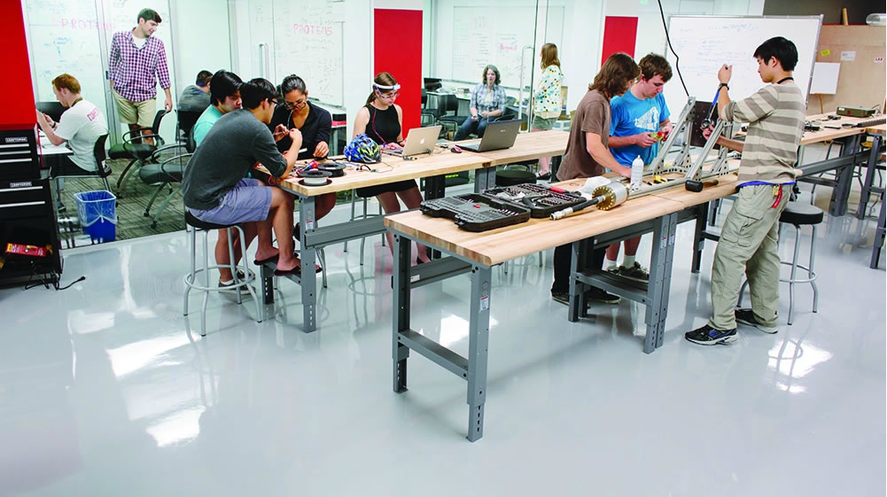 Students work at a designated "maker space."